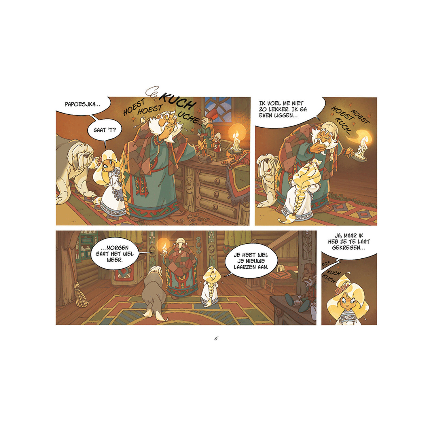 Anya 02 HC - Het Huis Van De Heks - Ondanks zijn nieuwe laarzen is Papoesjka erg ziek. De situatie wordt zorgwekkend als hij door het hoesten en de koorts zijn bed niet meer uitkomt. Als Anya hem zo ziet, verzamelt ze al haar moed en haar magische ganzenveer, en gaat ze samen met haar trouwe Kozak op zoek naar een geneesmiddel. Op weg naar de stad komt ze Tatiana, de tovenares, tegen die vertelt dat alleen Baba Yaga, de angstaanjagende heks die kinderen eet, haar kan helpen. Zal Anya haar angst kunnen overwinnen en diep het bos ingaan...?