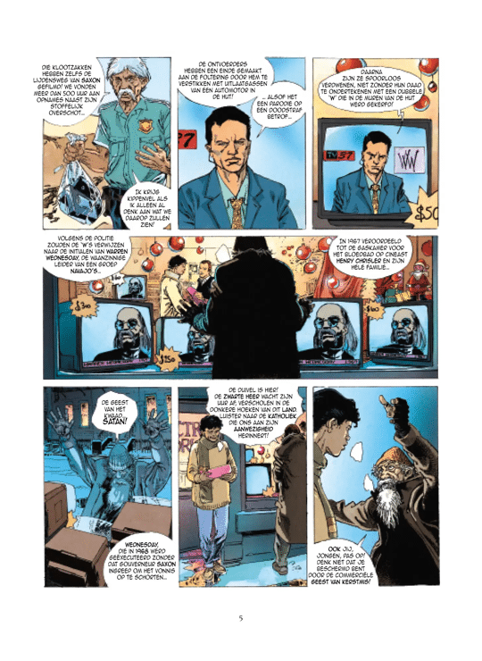 In De geest van Warren bouwen Luc Brunschwig (scenario) en Servain (tekeningen) een thriller op die je vanaf de eerste pagina vastgrijpt. Het verhaal speelt met identiteit, wraak en overdracht: is Warren teruggekeerd via een echte reïncarnatie, of heeft zijn zoon zich zó in die rol ingegraven dat hij Warren is geworden? Het antwoord blijft bewust verontrustend, terwijl de spanning zich deel na deel opstapelt.