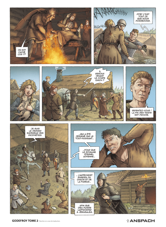 De man, die beweert de incarnatie te zijn van de laatste keizer uit de profetieën van de Apocalyps, stelt dat alleen terreur en bloedvergieten de Antichrist kunnen doen opstaan. En die zou de Heer in Jeruzalem confronteren,zodat het rijk van Gods uitverkorenen kan aanbreken. Door Emich uit te dagen tot een gevecht op leven en dood, wordt Godefroy geconfronteerd met zijn eigen duistere kant en met de twijfels die hem op de weg naar het Heilige Landkwellen.