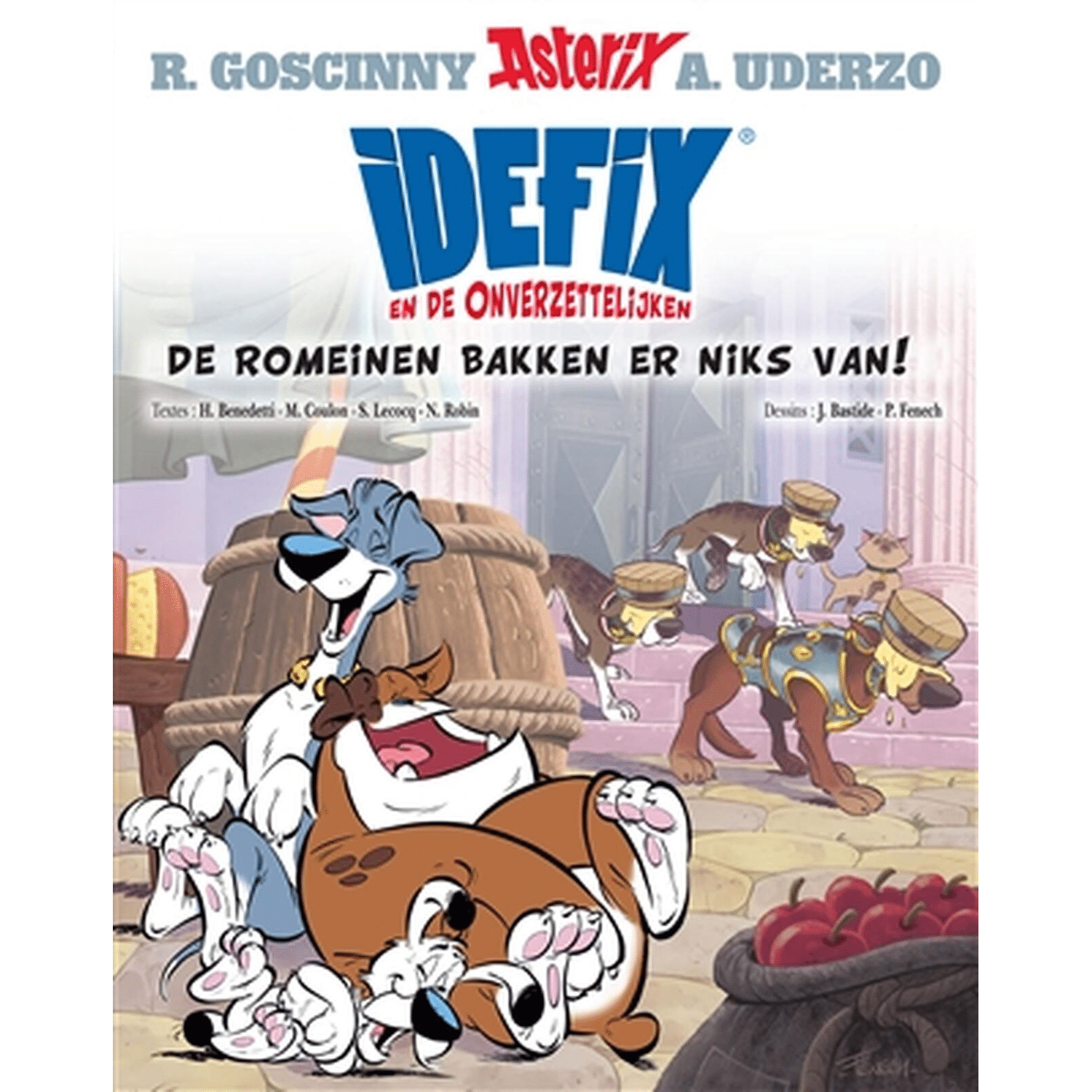 Idefix En De Onverzettelijken 02 SC - De Romeinen Bakken Er Niets Van - De avonturen van Idefix en de Onverzettelijken in strips zijnterug met een nieuw opus getiteld: De Romeinen bakken er niks van! In dit album3 nieuwe complete stripverhalen (Het Romeinse ei, De zaak van het halssnoer,Het beeld van Labienus), geschreven door Hervé Benedetti, Michel Coulon, SimonLecocq en Nicolas Robin, en getekend door Jean Bastide en Philippe Fenech. 48pagina's humor en actie in de straten van Luteta, met cameo's van personagesuit de Asterix-strips, een groot genot, bij Toutatis!