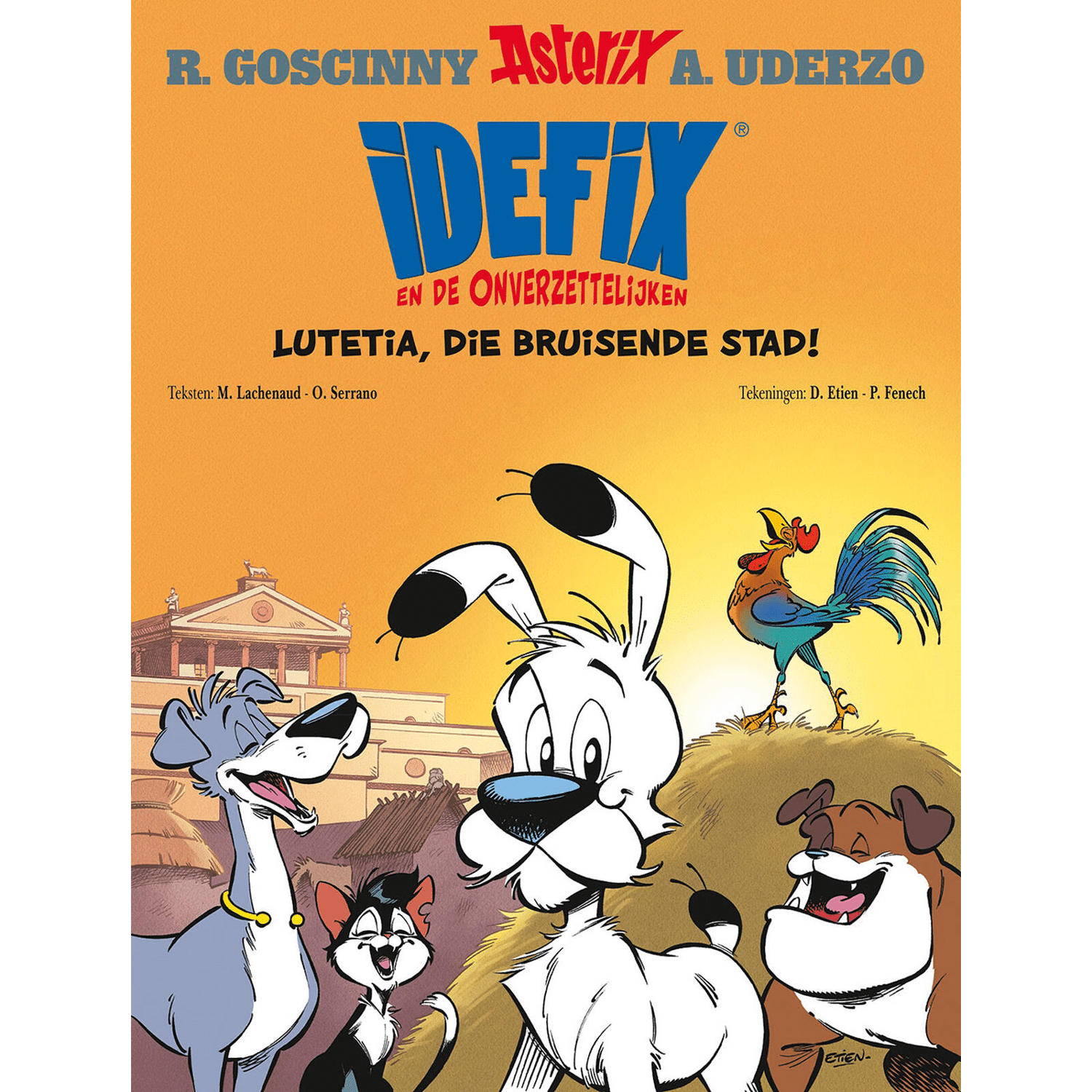 Idefix En De Onverzettelijken 03 SC - Lutetia, Die Bruisende Stad! - Het is het jaar 52 voor Christus. Heel Lutetia is bezet door deRomeinen... Heel Lutetia? Neen ! Een kleine groep onherleidbare Lutetischedieren onder leiding van Idefix weerstaat de indringer keer op keer. En hetleven is niet gemakkelijk voor generaal Labienus en de roedel honden dieLutetia proberen te romaniseren... 3 nieuwe verhalen om te ontdekken in hetderde deel: - De Glaive van Camulogene - Heroix en Bonemine, die door Lutèce trekken,proberen te voorkomen dat de Romeinse Anglaigus zich het zwaard toebehoort dattoebehoorde aan de leider van de Galliërs van Lutetia. Idefix en vrienden komendeze Galliërs te hulp, net zo onherleidbaar als zij! - Brandt Lutetia? –Dankzij een gekke uitvinding van Anglaigus die zich een kolenverwarming voorhet Romeinse paleis voorstelde, kreeg Lutèce in 52 voor Christus eenplotselinge opwarming van de aarde... Asmatix, de oude duif, stikte bijna in dedonkere wolk die de stad binnendringt... Idefix , Turbine, Baratine enPadgachix moeten zo snel mogelijk handelen! - Het ontwaken van Lutetia – Deberoemdste tenor van Lutetia, de haan Sinfonix, de echte wekker van alleLutetianen, is in gevaar: de Romeinen nemen hem gevangen om lunch te maken voorde kat Monalisa! Dogmatix en zijn vrienden zijn vastbesloten om hen in plaatsdaarvan letterlijk een hoofdgerecht aan te bieden!