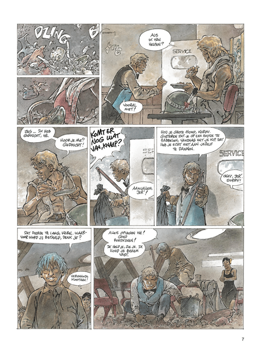 Jeremiah 42 SC - De Lakei - Jeremiah werkt als kelner in Silly Palace. Op een dag wordt hij door Diky, de neef van de baas, vernederd en uitgemaakt voor lakei. Jeremiah leert de onbeschofte kerel een lesje en weet onverwachts in de gunst te komen bij de baas zelf, Maxwell, die hem een baantje aanbiedt op zijn ranch. Maar daarmee haalt Jeremiah zich de woede van Diky en diens gevaarlijke vrienden op de hals.
