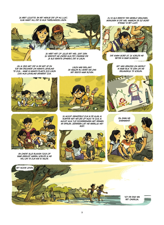 Véro Cazot en Carole Maurel brengen een ontroerende jeugdstrip over rouw, identiteit en veerkracht, met veel vaart, humor en emotie. Maurel (o.a. bekend van Wachten op Bojangles en Horizontale collaboratie) geeft Colette een expressieve, warme beeldtaal die jong én ouder publiek moeiteloos meesleept.