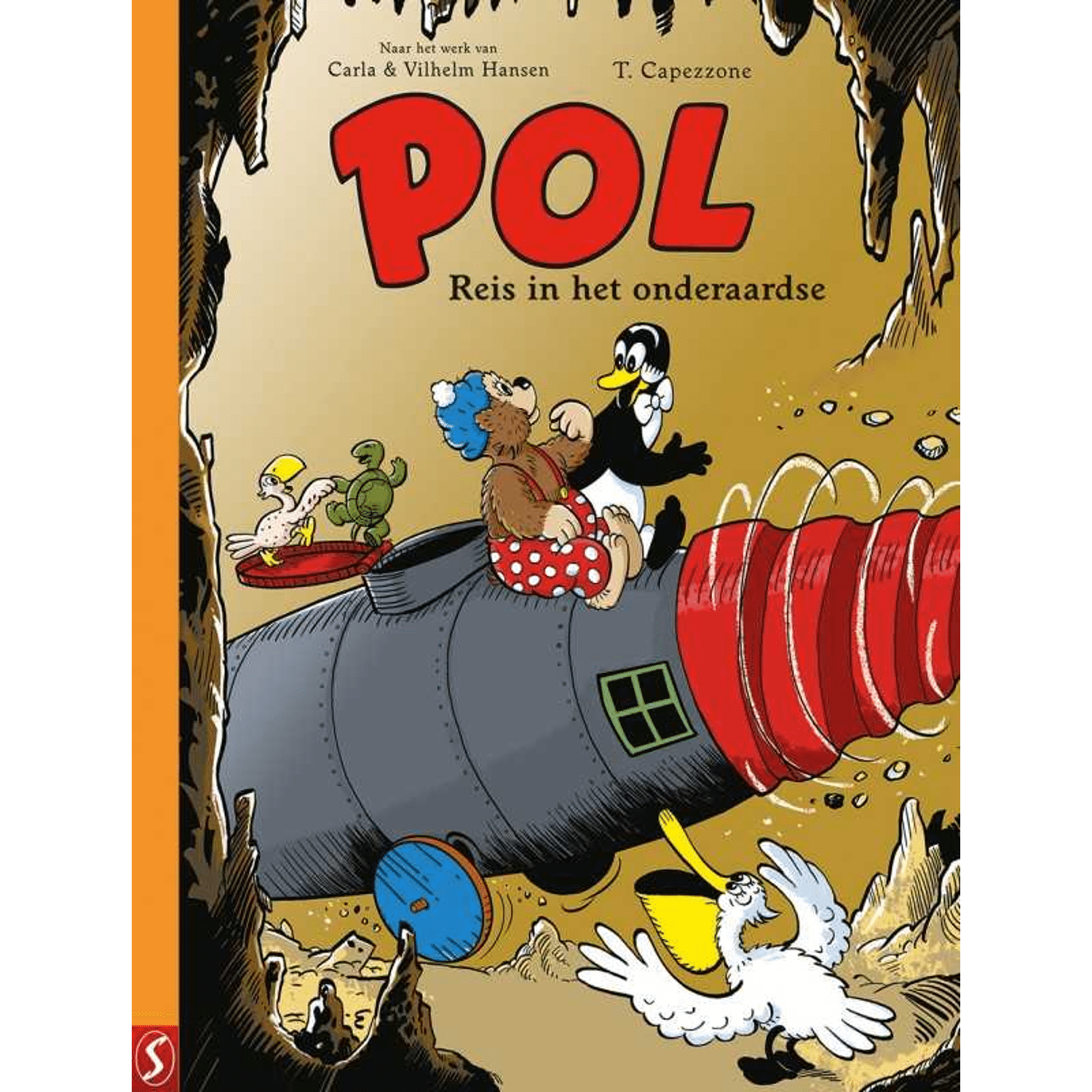 Pol 05 SC - Reis In Het Onderaardse - Waar komt die vreemde rook toch vandaan? Als een echte vrijwillige brandweerman stort Pol zich, samen met zijn vrienden Pelle, Pingo, Admiraal, Pilschat en de papegaai, in een nieuw avontuur. Een onderzeeër, een pannenkoekenkiosk en hup! daar gaan ze op weg om de geheimzinnige diepten van de aarde te verkennen