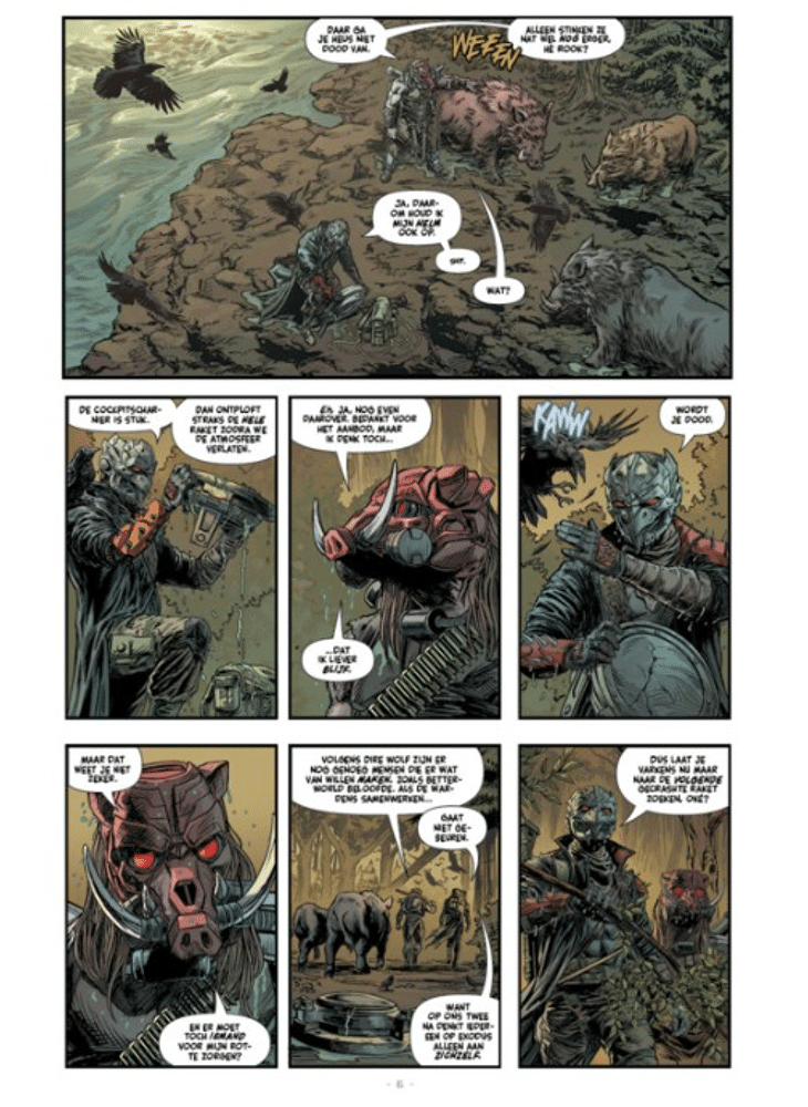 Rook Exodus 01 SC - Honderden jaren in de toekomst was de man die Rook werd genoemd een eenvoudige boer die de verwoeste Aarde ontvluchtte voor een nieuw bestaan. Hij reisde naar de planeet Exodus, een getransformeerde wereld waar de natuur, inclusief de geïmporteerde dieren- populatie, volledig onder controle stond van mensen die Warden werden genoemd. Maar toen de wereldorde van Exodus faalde, viel de macht van de Warden in verkeerde handen. Dit leidde tot chaos en massale evacuaties naar andere planeten. Tenminste voor degenen die het zich konden veroorloven. De rest, zoals Rook, moet op zoek naar een andere manier om de verdoemde planeet te ver- laten, terwijl de oorlog om de controle over wat er nog over is van Exodus begint.