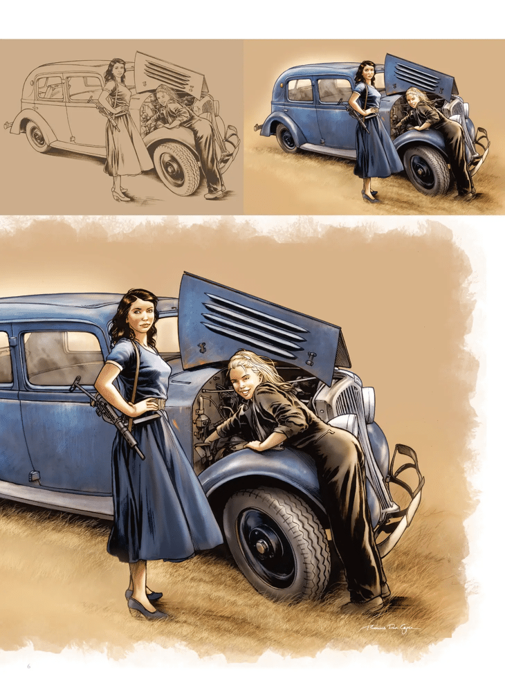 Thomas De Caju Artbook HC - Dit gelimiteerde artbook brengt voor het eerst het beste werk van Thomas Du Caju samen: origineleplaten, potloodschetsen, inktingen, coverontwerpen en zeldzame illustraties uit al zijn reeksen. Je bladert door zijn complete universum, van ruwe eerste lijnen tot uitgewerkte pagina’s vol actie, emotie en sfeer.