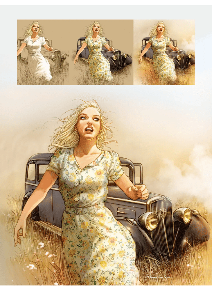Dankzij de grote formaatpagina’s komen details, kadrering en dynamiek maximaal tot hun recht. Voorstudies, alternatieve versies en close-ups laten zien hoe Du Caju zijn scènes opbouwt en waarom hij tot de top van de Europese strip behoort.