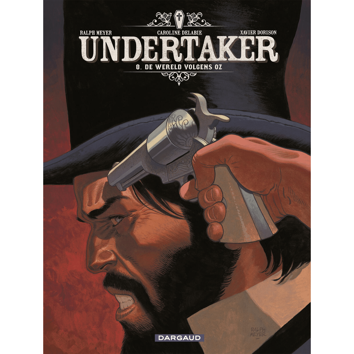 Undertaker 08 SC - De Wereld Volgens Oz - In Eaden, een stadje in Texas dat geteisterd is door de Secessieoorlog, heeft Sister Oz de bevolking ervan overtuigd dat ze hun eer kunnen herstellen door het recht in eigen handen te nemen… en door te voorkomen dat Eleonor Winthorp abortus pleegt. Alle middelen zijn daarvoor toegestaan: vernedering,intimidatie, ja ze beramen zelfs de moord op Randolph Prairie, de dokter die de operatie zou uitvoeren. Maar dan duikt er een man op die het opneemt voor de dokter, ook al zijn ze liefdesrivalen, zodat Eleonor haar eigen lot kan bepalen: Jonas Crow, de Undertaker. Eén ding staat vast, niemand komt ongeschonden uit de wereld volgens Oz.